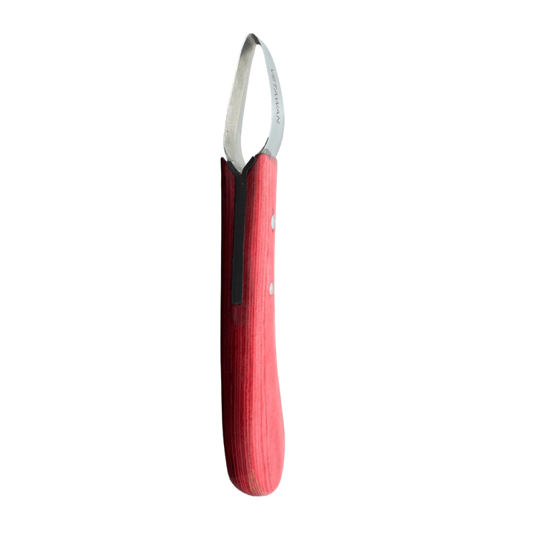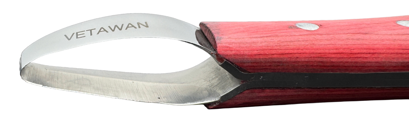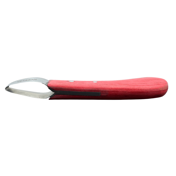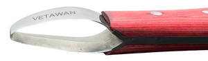 The double edge hoof knife is ideal for precise cutting and shaping of the hoof. Thanks to the robust stainless steel blade and ergonomic wooden handle, it is comfortable to use, even in hard-to-reach places. Perfect for professional use by farriers.