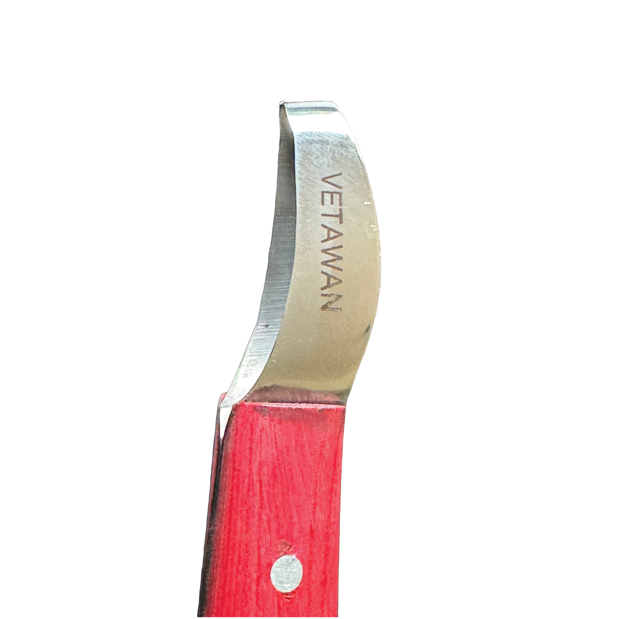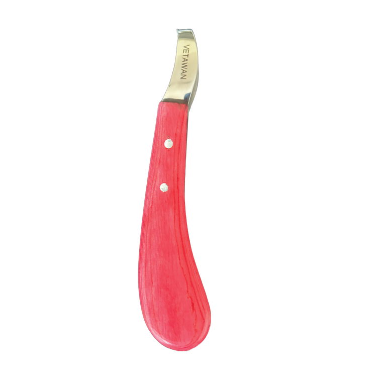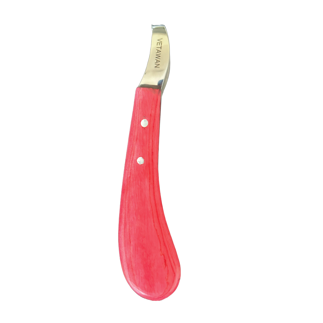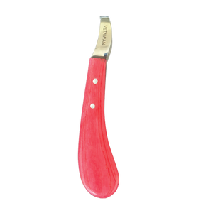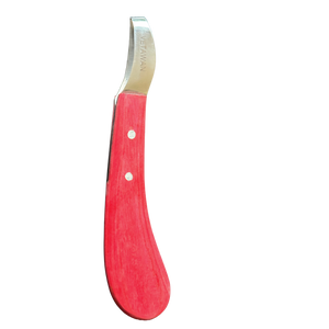 The double-sided hoof knife is ideal for precise cutting and shaping of the hoof. Thanks to the robust stainless steel blade and ergonomic wooden handle, it is comfortable to use, even in hard-to-reach places. Perfect for professional use by farriers.