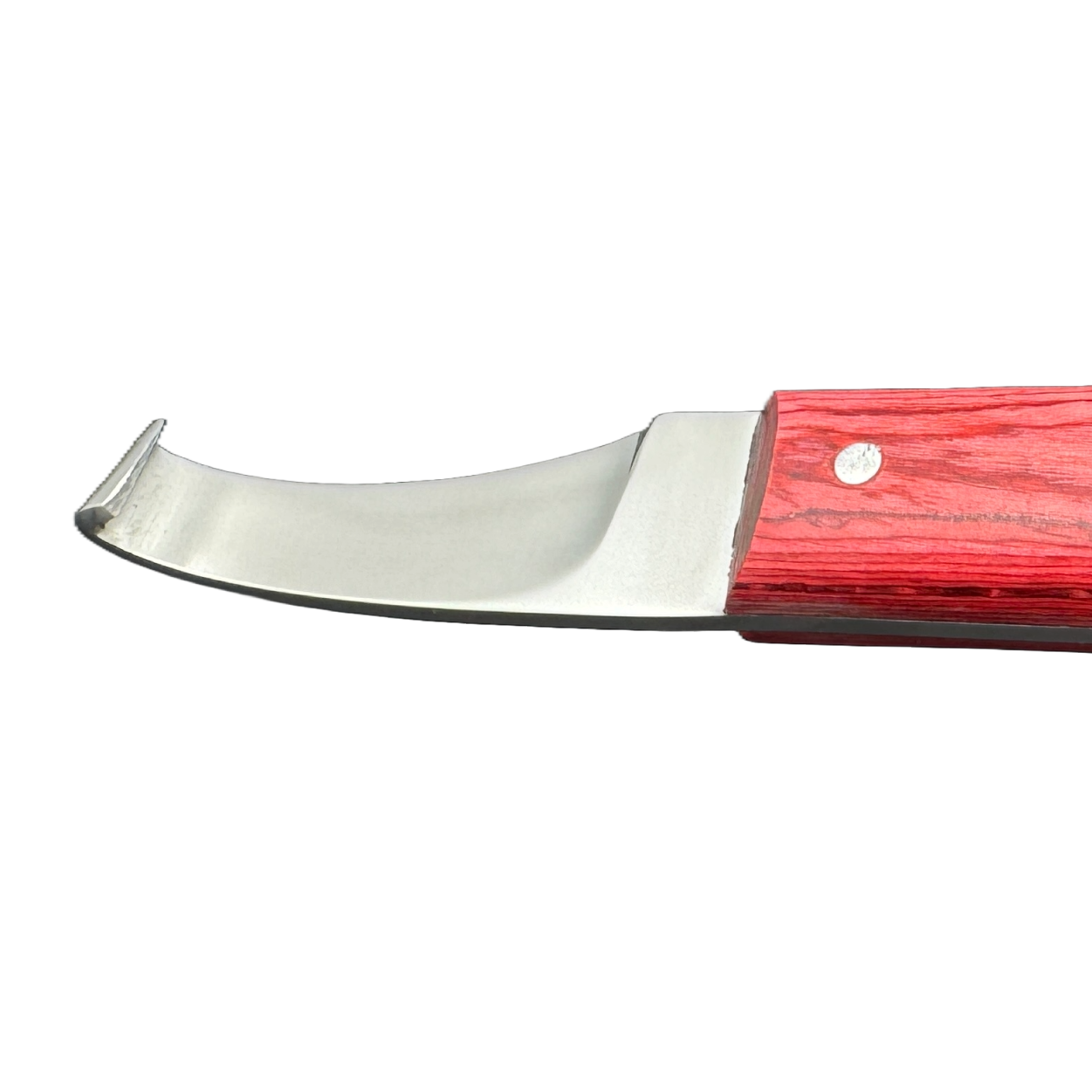 The hoof knife is perfect for precise trimming and working on the hoof, especially in hard-to-reach areas. Thanks to the robust, single-sided stainless steel blade and the ergonomic wooden handle, it offers farriers easy handling and long-lasting cutting performance.