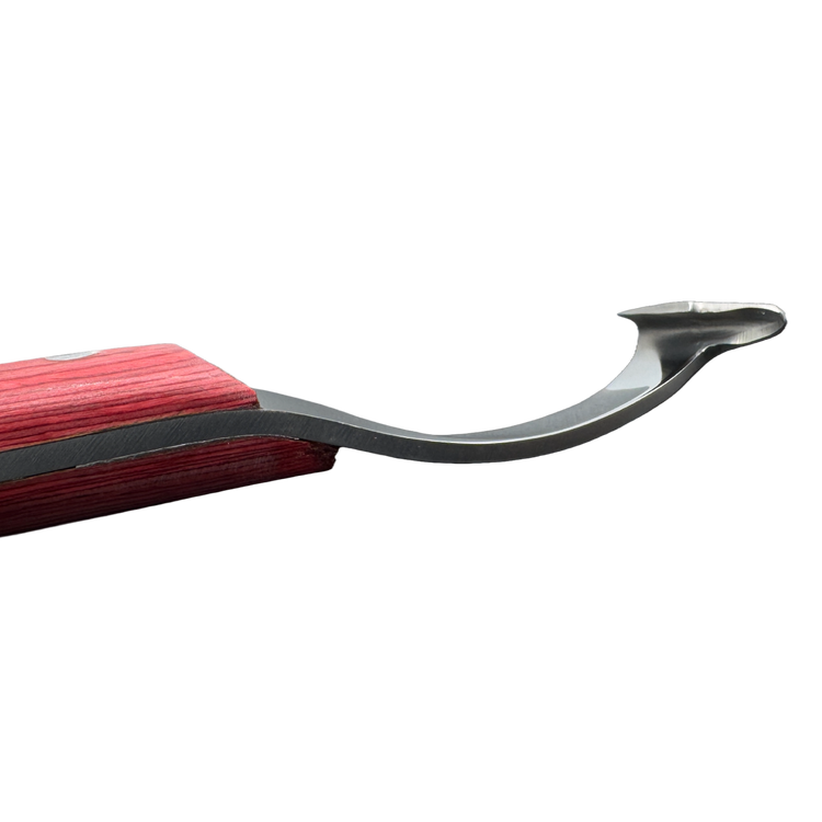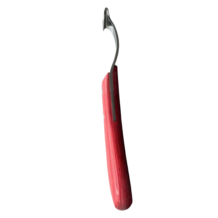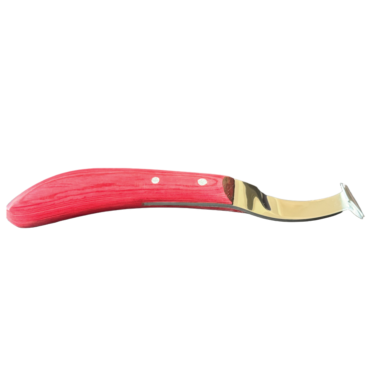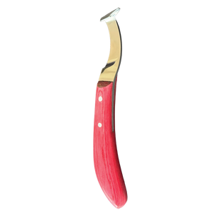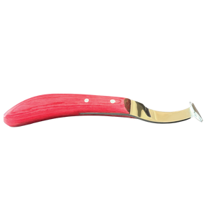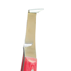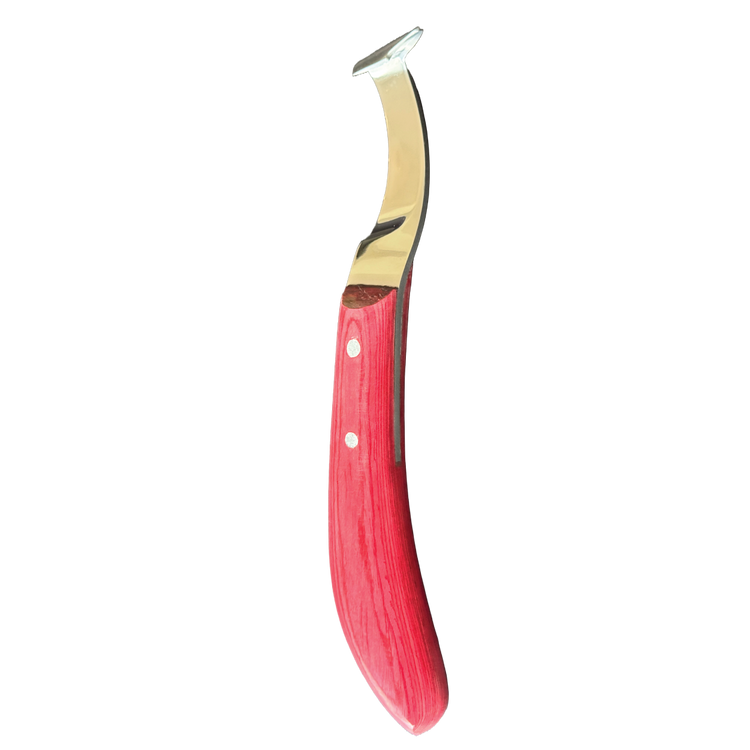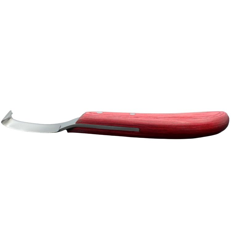 This high-quality hoof and claw knife is the ideal tool for professional care of horses, sheep, and goats. Made of rust-resistant stainless steel and equipped with an ergonomically shaped handle made of robust hardwood, it fits comfortably in the hand and allows for precise, fatigue-free work – even during extended use.