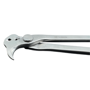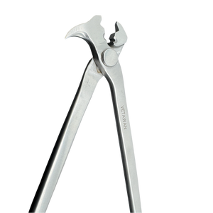 33cm long professional nail puller made of stainless steel, specially designed for farriers. Made from durable and robust material, ideal for easy and safe hoof nail removal on horses. Perfect tool for daily use and hoof care. High-quality workmanship for long-lasting use.